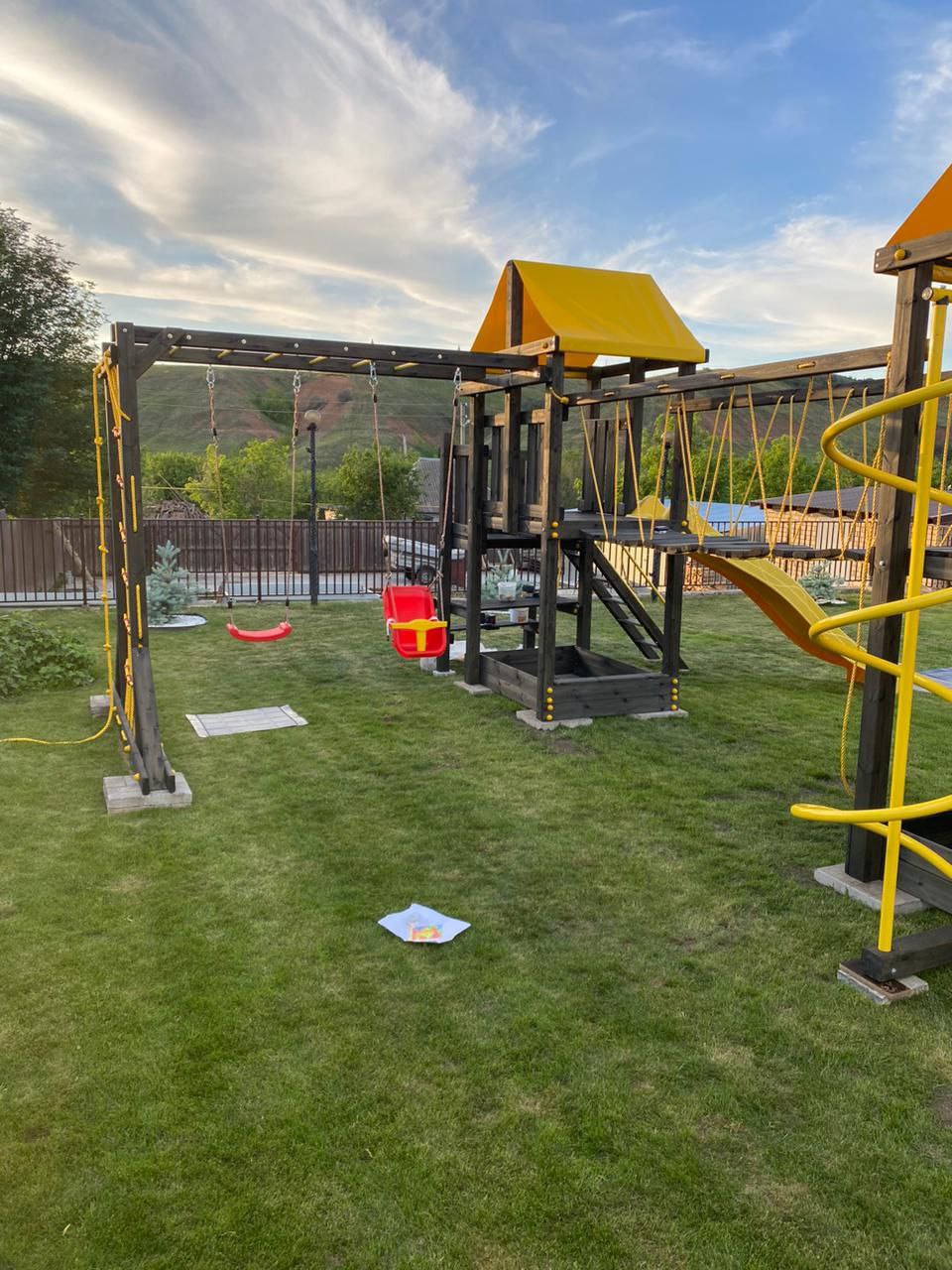 Обращаем Ваше внимание, что фактический цвет детской площадки может отличаться от представленных фото на сайте. Специфика окраски нетоксичными пропитками и красителями допускает отклонения в цветовой гамме отгружаемых изделий. Также обратите внимание, что фактический цвет может отличаться из-за цветопередачи устройства на котором Вы смотрите фото.