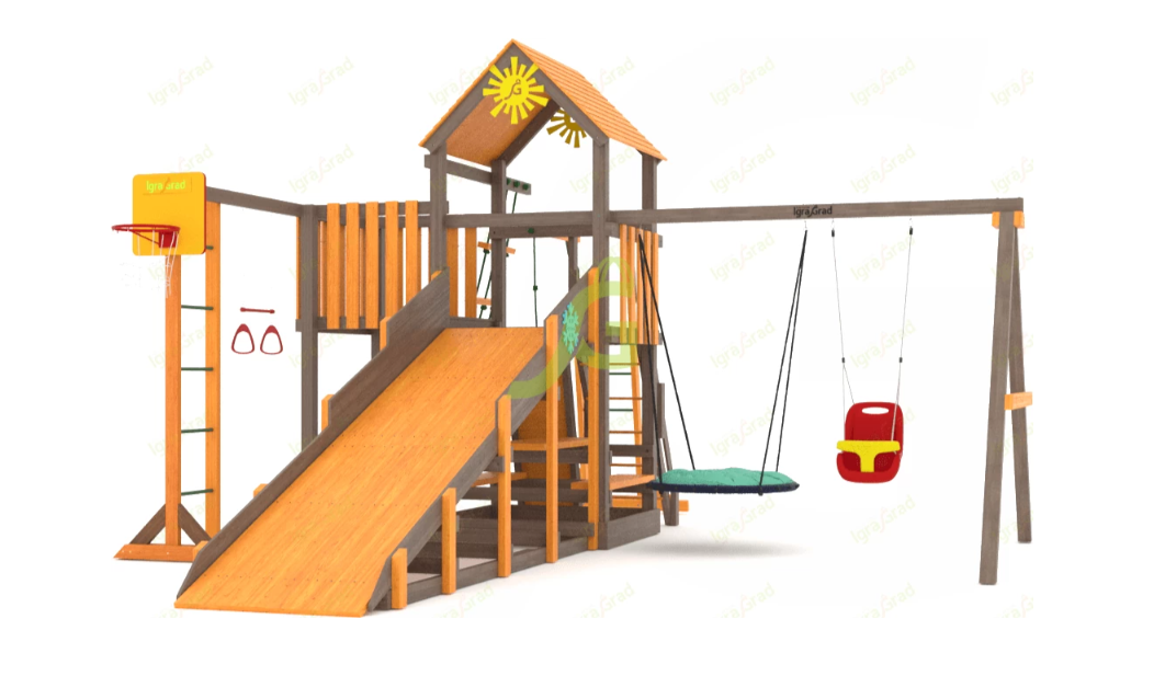 Якоря, столик с детской кухней, подушка и металлические перила на лестницу в комплект не входят. Приобретаются отдельно по желанию клиента.