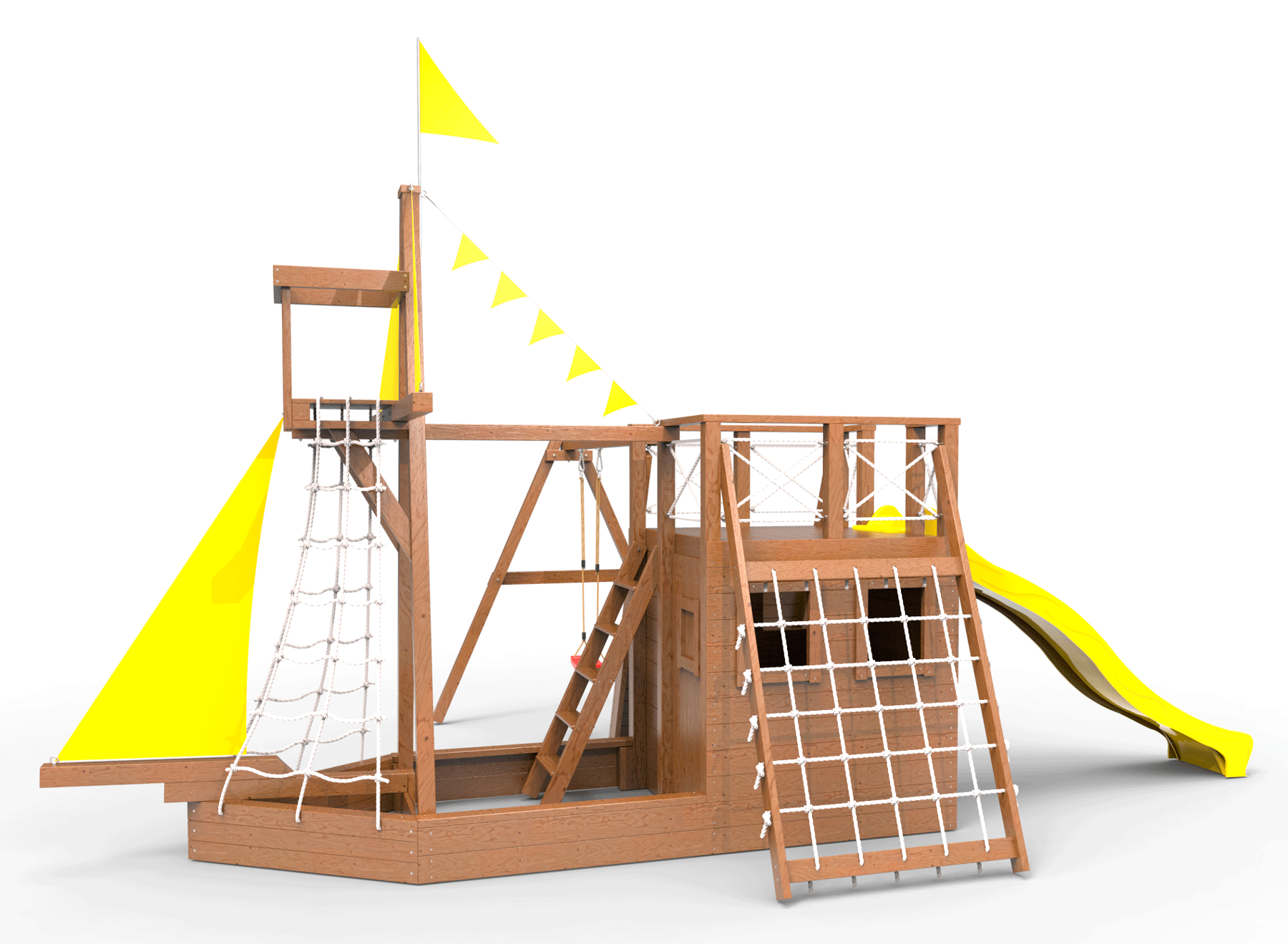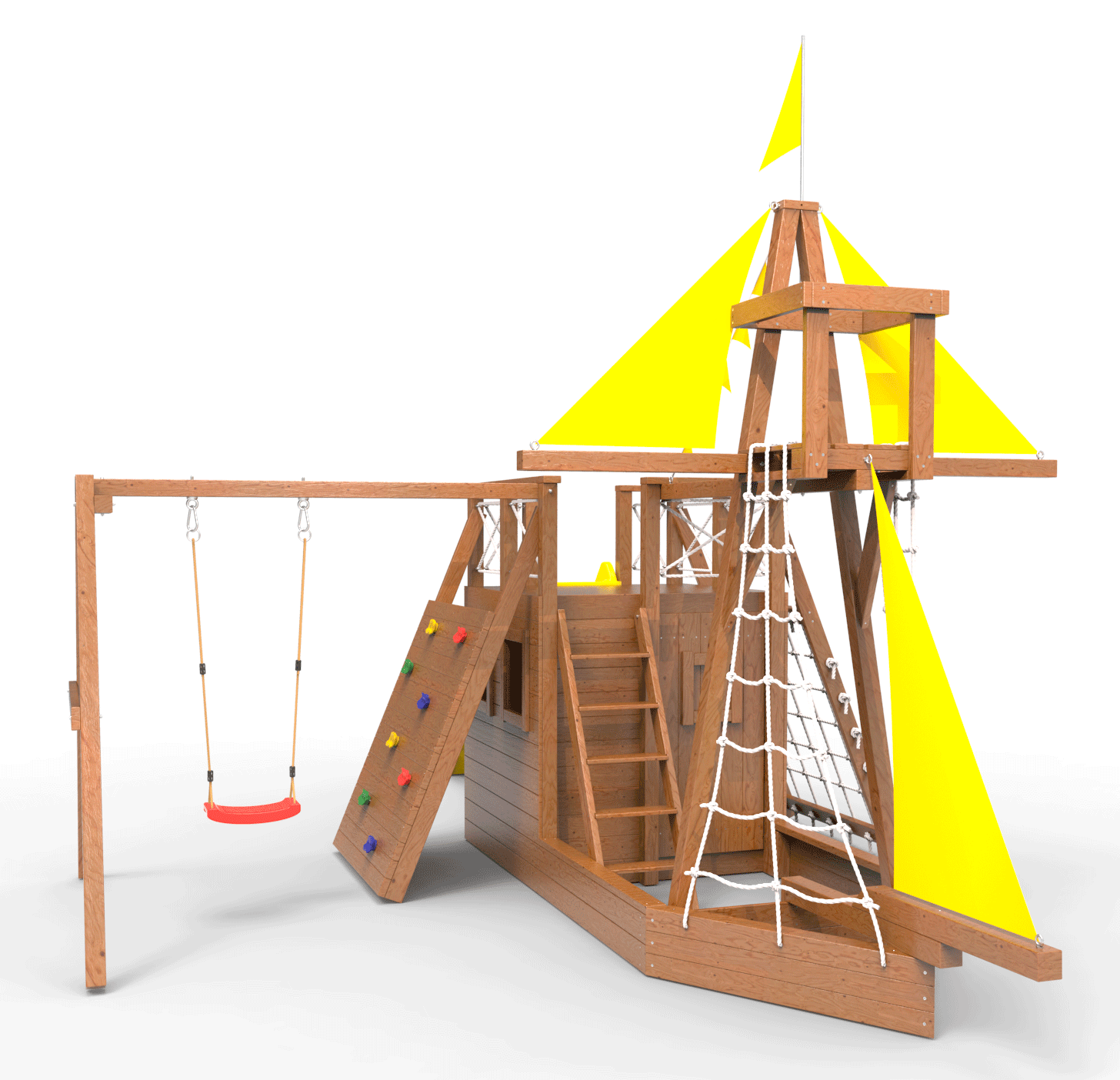 Большой корабль под настоящими парусами умчит вашего ребенка в мир его фантазий, где можно найти клад на островах, посетить невиданные страны, подружиться с необычными морскими обитателями. Такое чудо увлечет любого малыша! А благодаря тому, что в комплектацию «Корабля Океан» входят и классические элементы детских площадок: горка, качели, песочница, скалодром, сеть для лазания и домик – игры будут разнообразнее и полезнее.