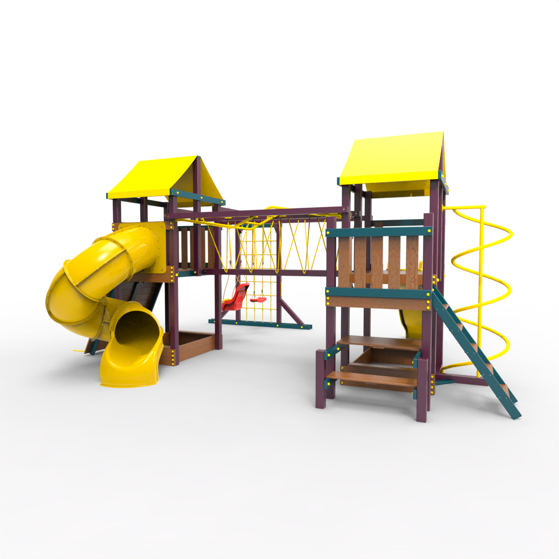 | Комплектация | Два домика|Песочница|Лестница|Шторм-трап|Скалодром|Рукоход|Руфер|Балкон|Столик с лавочками|Подвесной мост|Горка|Спираль|Сеть для лазания|Качели|Заливная горка|ЗигЗаг|Переправа |