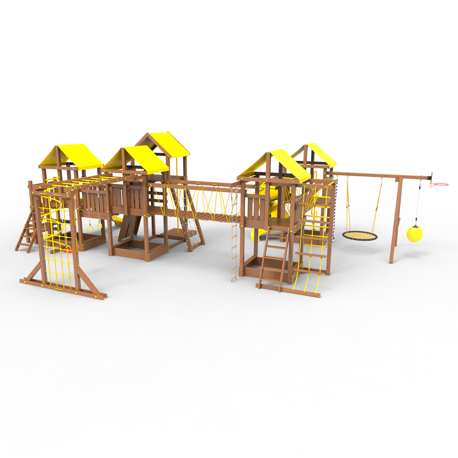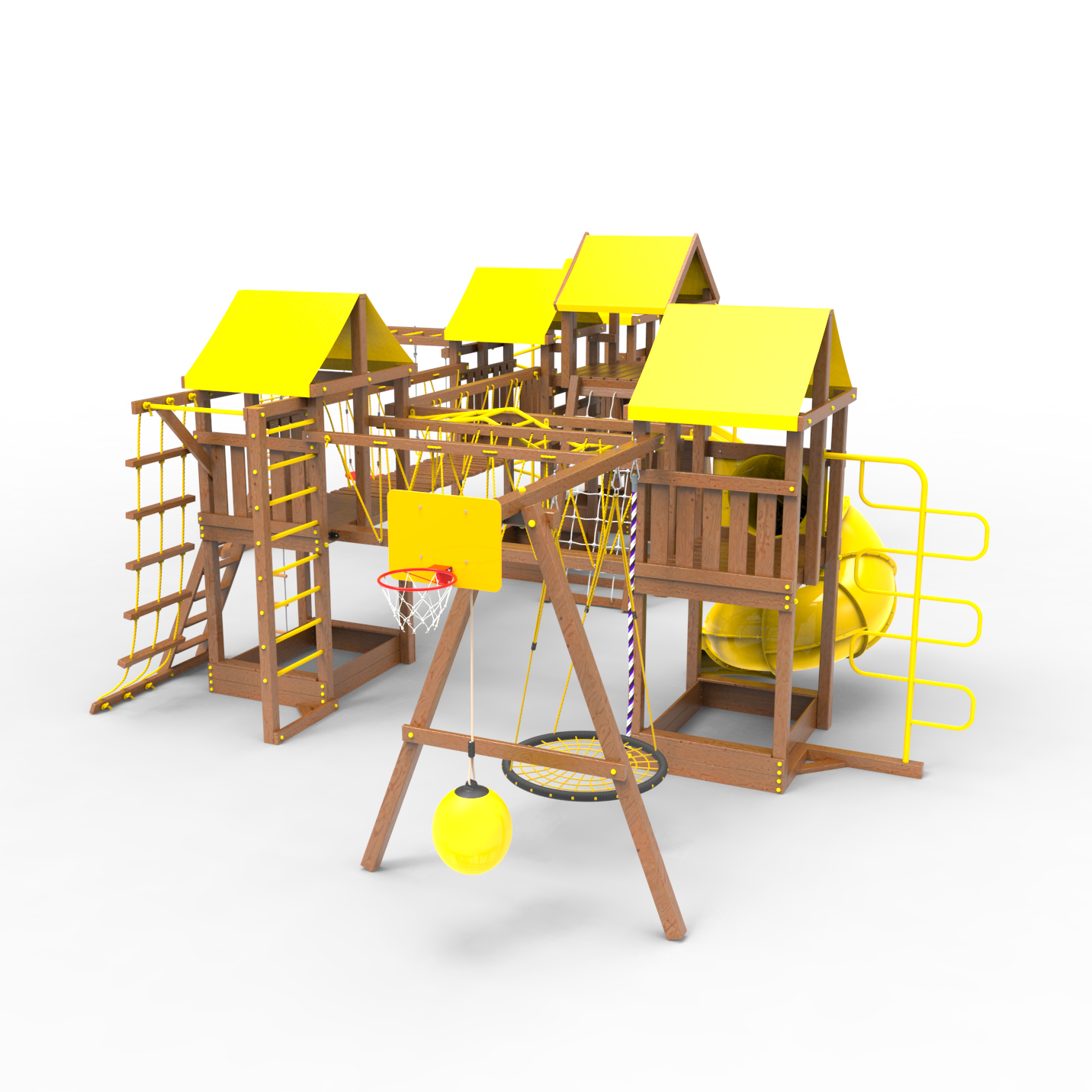 | Комплектация | Высокий домик|Два домика|Песочница|Лестница|Шторм-трап|Скалодром|Шведская стенка|Рукоход|Турник|Руфер|Балкон|Столик с лавочками|Баскетбольная корзина|Мостик|Подвесной мост|Горка|Винтовая труба|Спираль|Волна|Пожарный шест|Сеть для лазания|Качели|ЗигЗаг|Переправа |