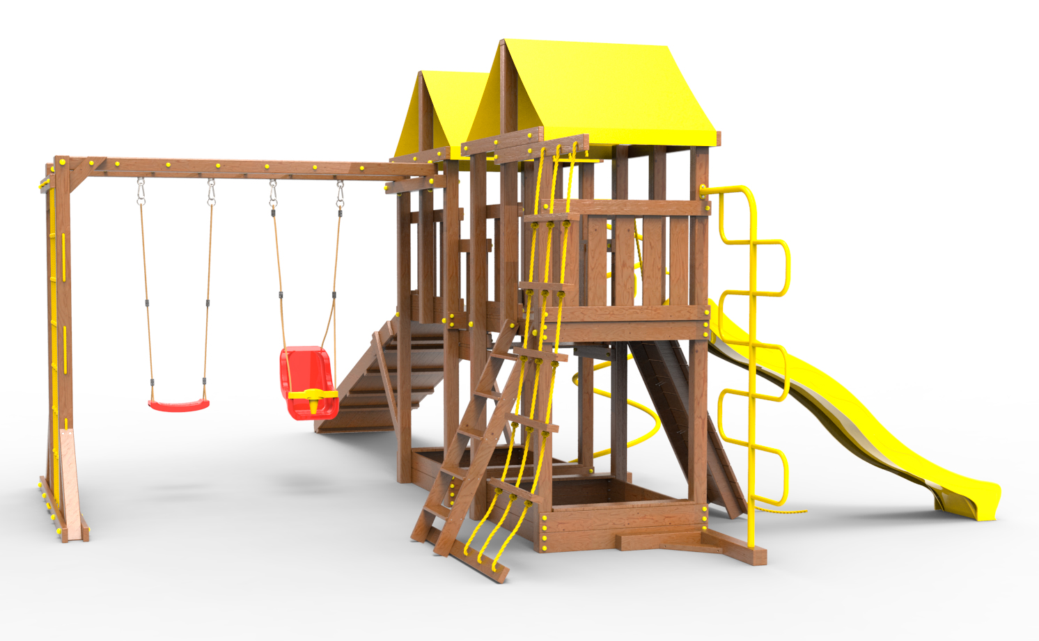 Обращаем Ваше внимание, что фактический цвет детской площадки может отличаться от представленных фото на сайте. Специфика окраски нетоксичными пропитками и красителями допускает отклонения в цветовой гамме отгружаемых изделий. Также обратите внимание, что фактический цвет может отличаться из-за цветопередачи устройства на котором Вы смотрите фото.