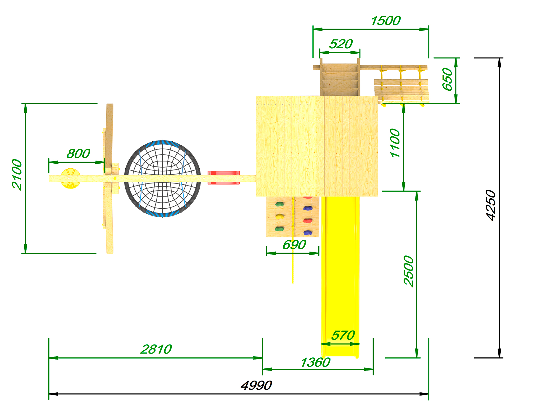 Обращаем Ваше внимание, что фактический цвет детской площадки может отличаться от представленных фото на сайте. Специфика окраски нетоксичными пропитками и красителями допускает отклонения в цветовой гамме отгружаемых изделий. Также обратите внимание, что фактический цвет может отличаться из-за цветопередачи устройства на котором Вы смотрите фото.
