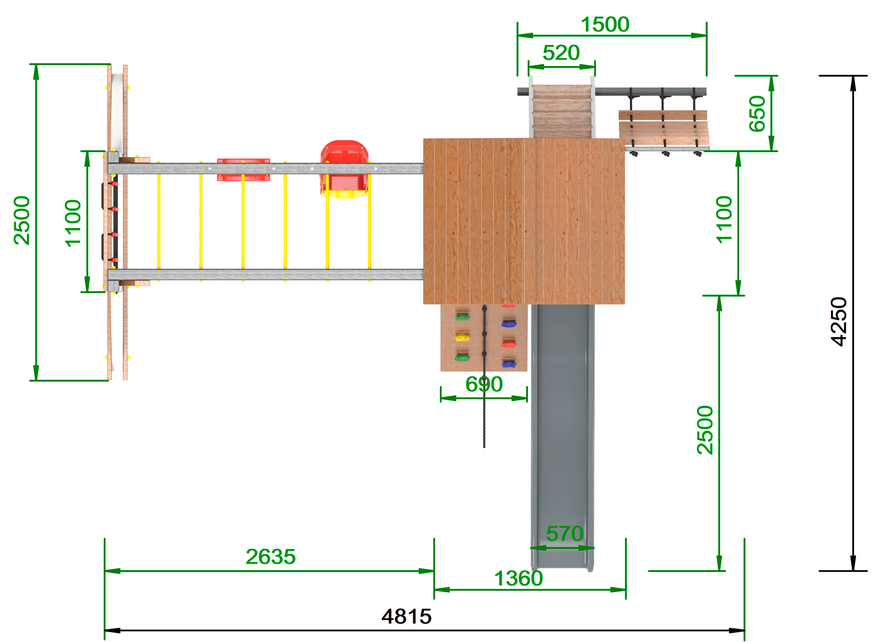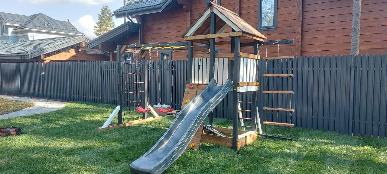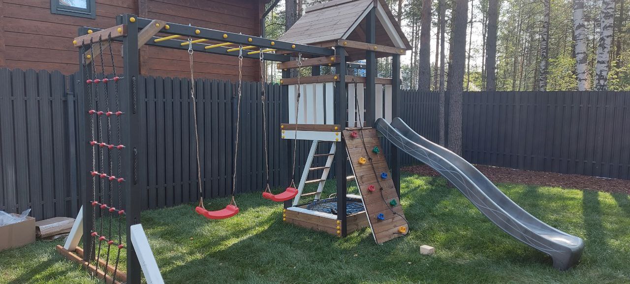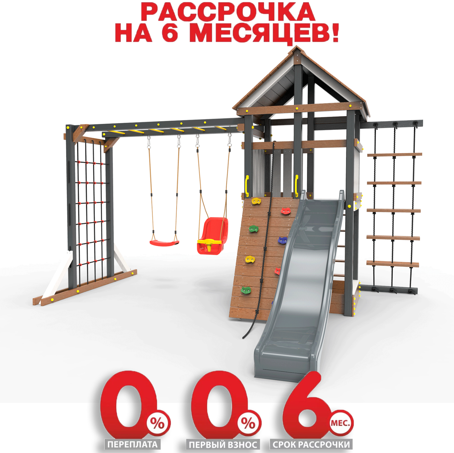 Обращаем Ваше внимание, что фактический цвет детской площадки может отличаться от представленных фото на сайте. Специфика окраски нетоксичными пропитками и красителями допускает отклонения в цветовой гамме отгружаемых изделий. Также обратите внимание, что фактический цвет может отличаться из-за цветопередачи устройства на котором Вы смотрите фото.