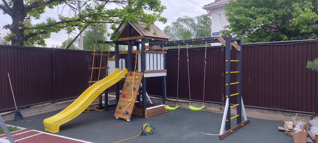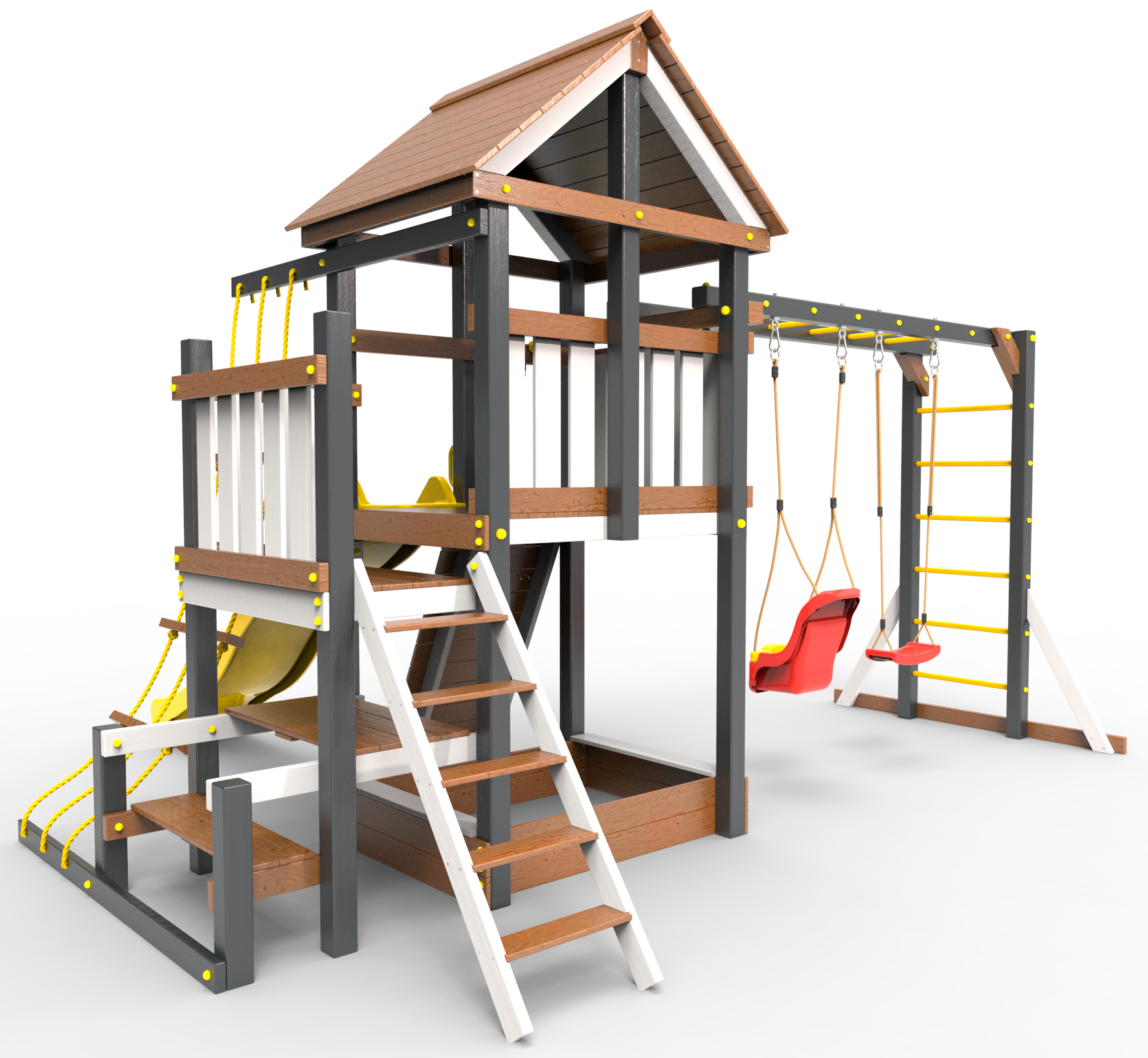 Обращаем Ваше внимание, что фактический цвет детской площадки может отличаться от представленных фото на сайте. Специфика окраски нетоксичными пропитками и красителями допускает отклонения в цветовой гамме отгружаемых изделий. Также обратите внимание, что фактический цвет может отличаться из-за цветопередачи устройства на котором Вы смотрите фото.