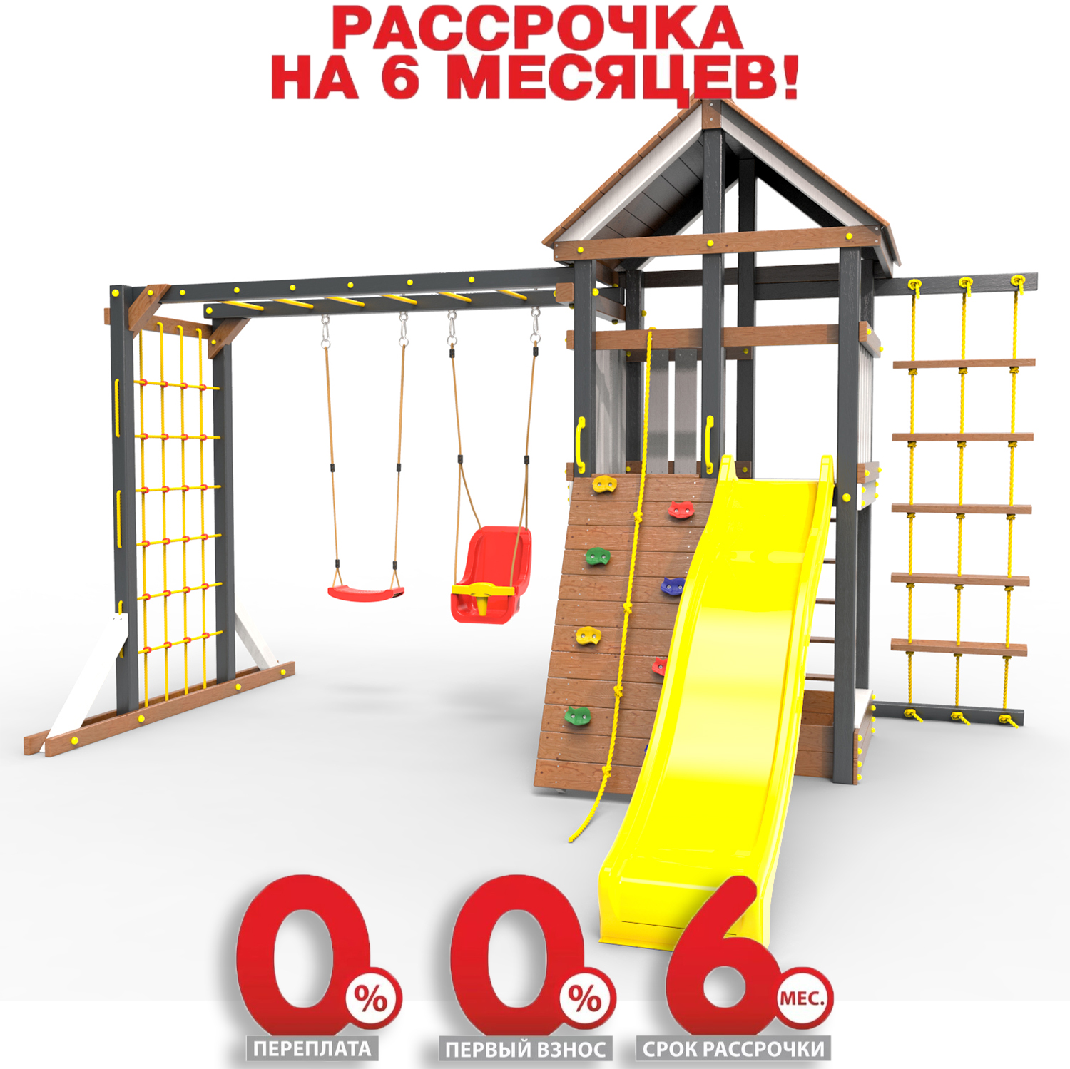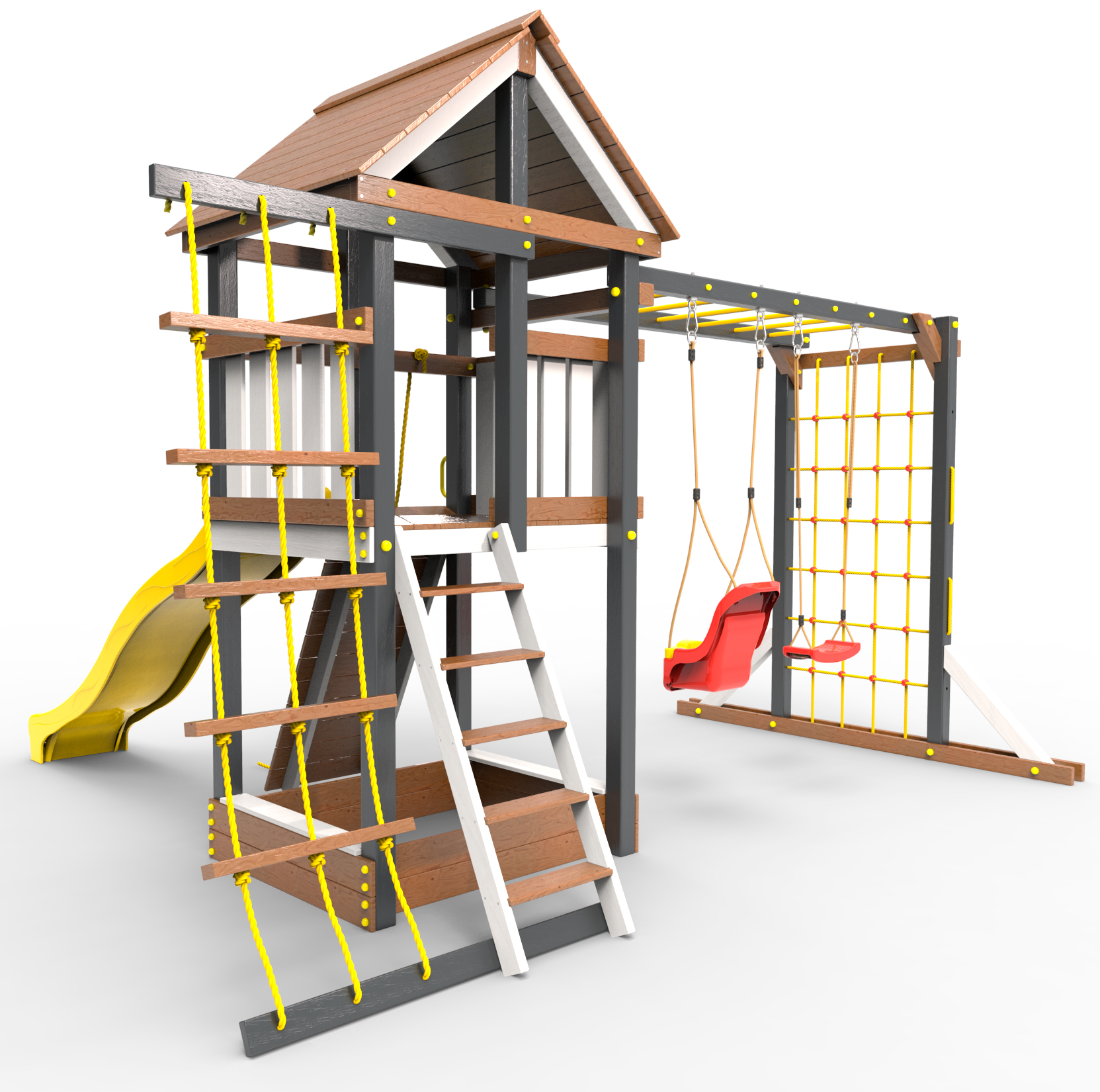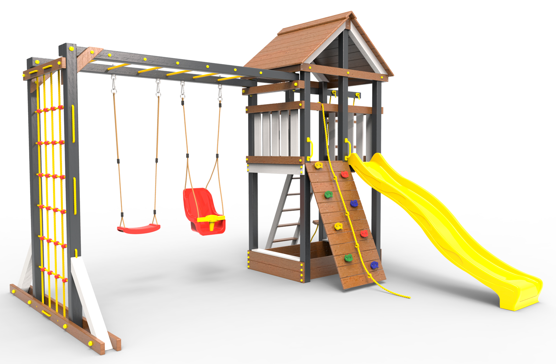 Обращаем Ваше внимание, что фактический цвет детской площадки может отличаться от представленных фото на сайте. Специфика окраски нетоксичными пропитками и красителями допускает отклонения в цветовой гамме отгружаемых изделий. Также обратите внимание, что фактический цвет может отличаться из-за цветопередачи устройства на котором Вы смотрите фото.