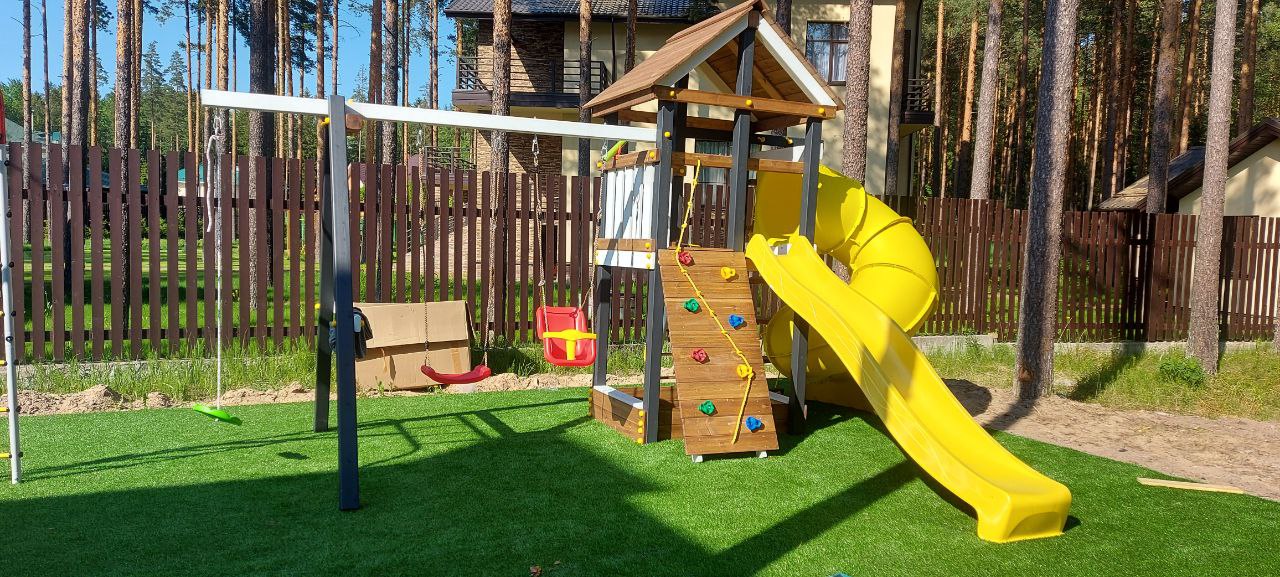 Обращаем Ваше внимание, что фактический цвет детской площадки может отличаться от представленных фото на сайте. Специфика окраски нетоксичными пропитками и красителями допускает отклонения в цветовой гамме отгружаемых изделий. Также обратите внимание, что фактический цвет может отличаться из-за цветопередачи устройства на котором Вы смотрите фото.