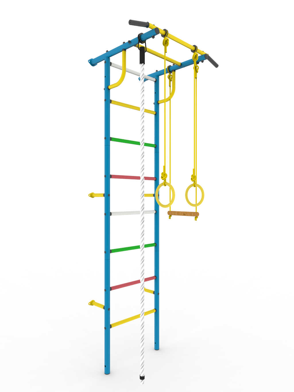 - Комплектация: турник, кольца гимнастические, канат, трапеция