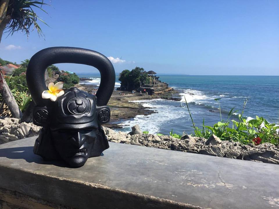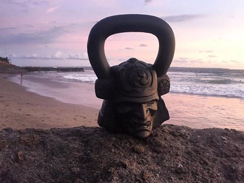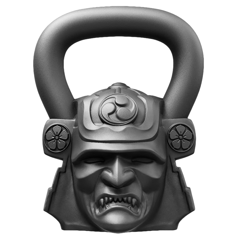 Эта гиря выполнена в виде головы древнего воина в шлеме. Зубы воина злобно оскалены, лицо выражает агрессию и ярость битвы, он в любой момент готов напасть, не ведая ни страха, ни боли. На шлеме изображена трехлучевая свастика, или трискелион — это древний символ удачи и триединства, трех миров: верхнего, нижнего и мира людей. Этот символ дает воину победу иделает его непобедимым в трех мирах, с кем бы он ни сражался, будь то смертные или злые духи. В японской геральдике (Камон) этот символ (Томоэ-мон) обозначает – Вечность. По бокам на шлеме воина изображены цветы (китайский колокольчик - Кикё-мон), они напоминают о том, что воин не бессмысленно жесток — он защищает то, что ему дорого: мирных людей, родную землю и саму жизнь. У самураев это символ постоянства и ответственности. Такая гиря поднимет своим видом боевой дух и даст силы и мужество тренироваться, что бы победить всех! Ведь прежде, чем одержать победу над врагами, воин должен победить самого себя, избавившись от внутренних слабостей с помощью могучей силы воли.