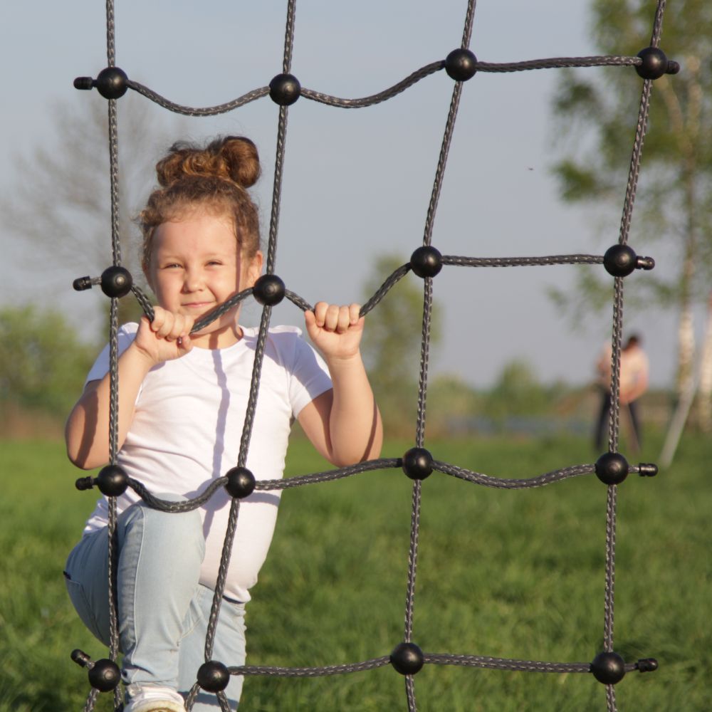 Игровой объект предназначен для детей от трех лет и старше, максимальная нагрузка на лаз не должна превышать 50кг. Сетка выполнена из прочного полипропилена. Материал устойчив к истиранию, что обеспечивает долговечность эксплуатации лаза. Фиксаторы из пластика в местах соединения каната не позволяют сетке деформироваться.