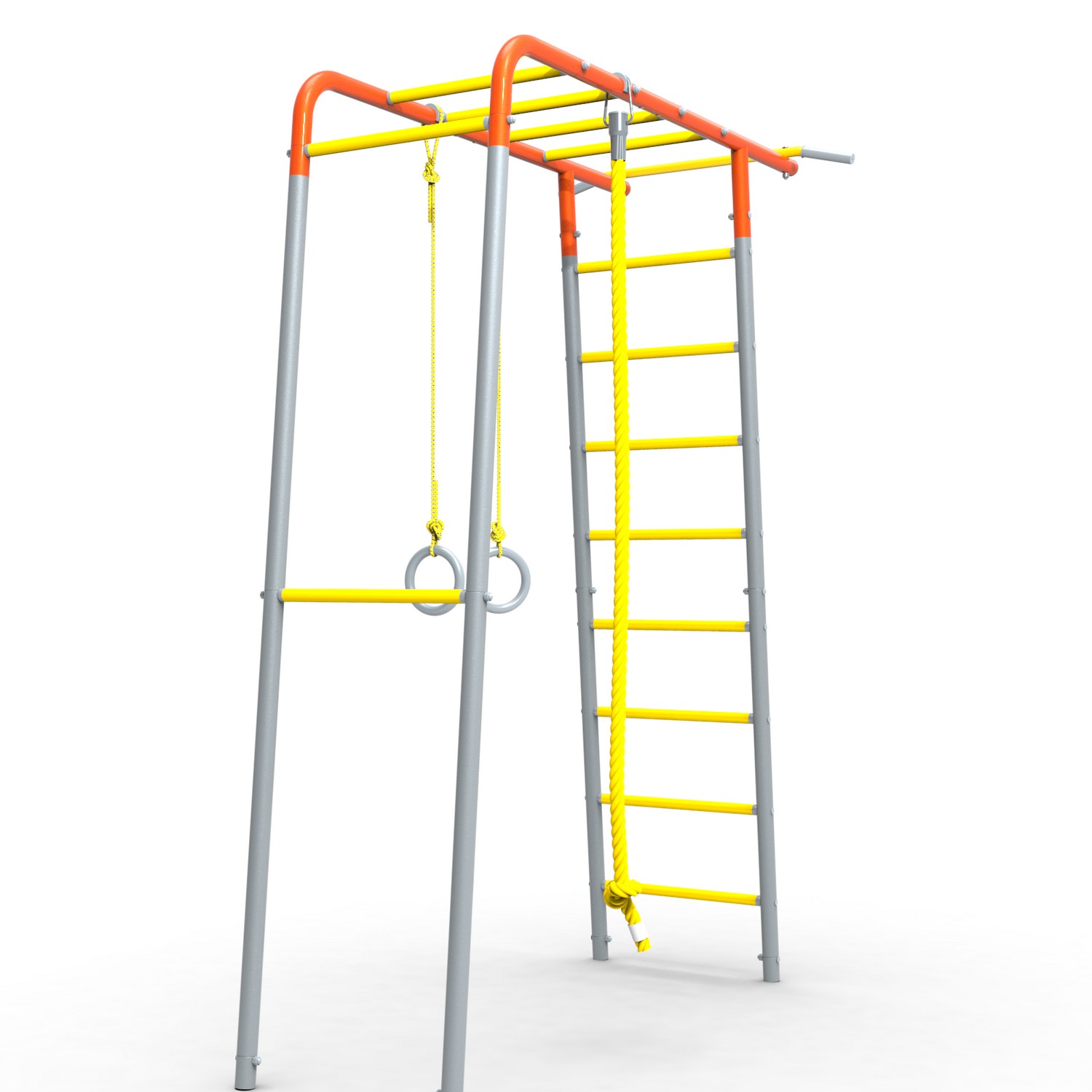- Комплектация Рукоход, турник, канат, кольца гимнастические, ПВХ ступени